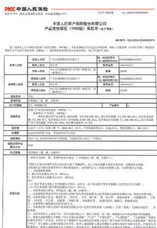 产品质量由人保承保